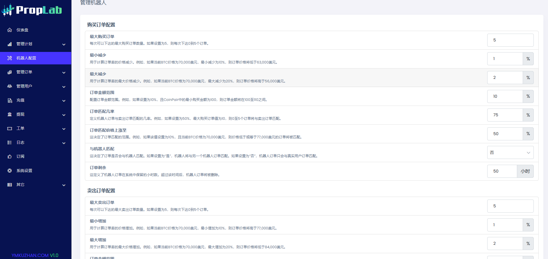 • 配备完全可控的买卖机器人。