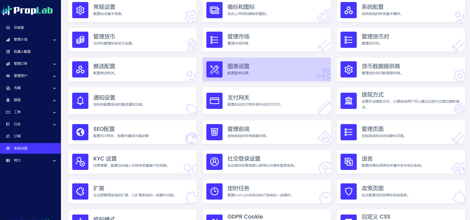 • 管理市场、推送、图表、货币数据和硬币对。