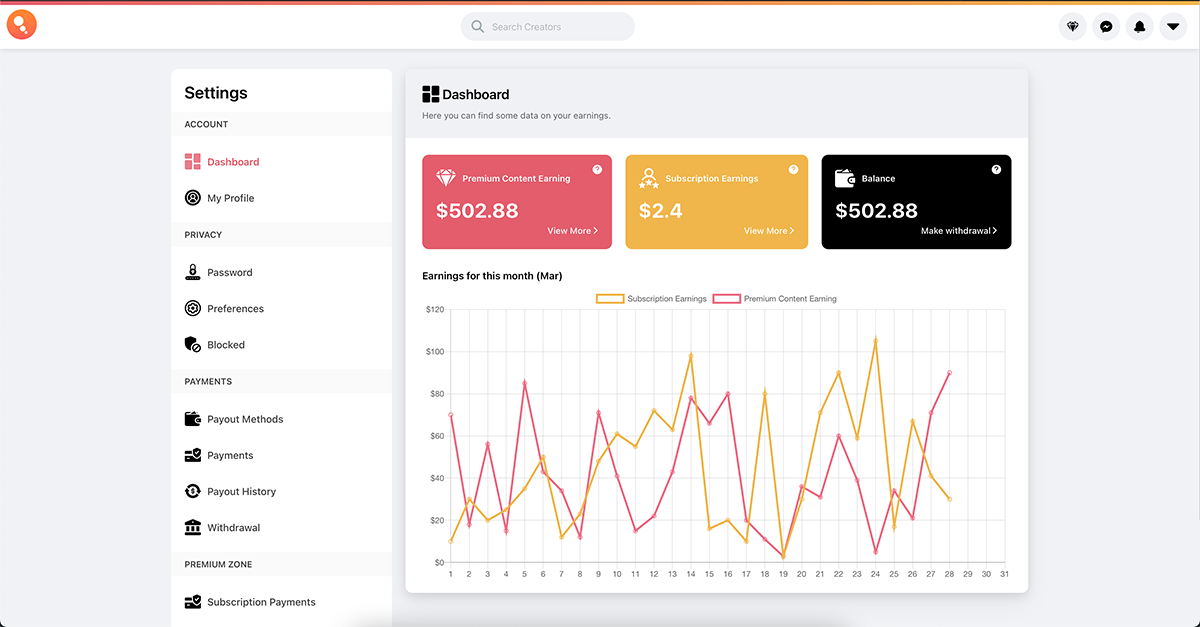 多种收入方式:通过发帖、打赏、付费消息和直播赚钱,同时支持数字或实体产品销售。