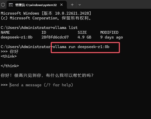 注:若提示命令不存在,需手动添加Ollama到系统环境变量