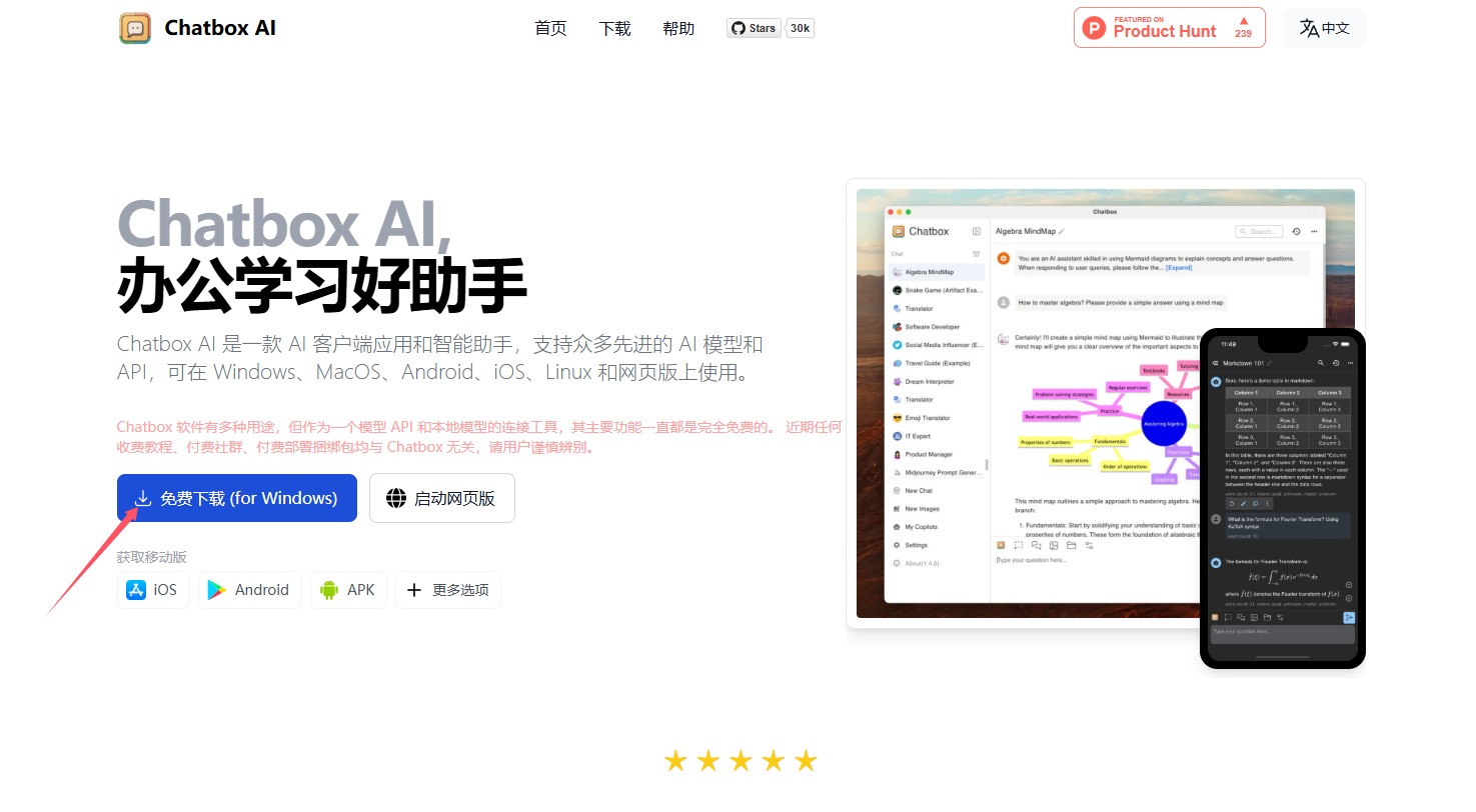 - 访问 ChatBox官网 https://chatboxai.app/下载Windows客户端。