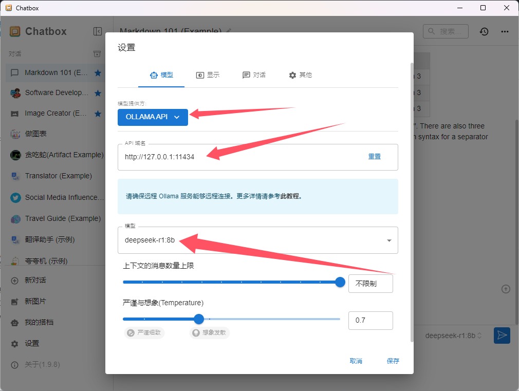 - 在chatbox官网点击启动网页版即可,设置模型等与APP设置相同。