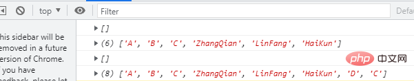 var arr = ["A","ZhangQian","LinFang","HaiKun"]; arr.splice(1,0,"B","C"); console.log(arr); arr.splice(arr.length,0,"D","C"); console.log(arr);
