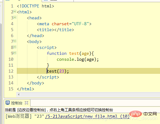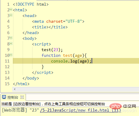 <script> function test(age){ //先定义方法,再调用 console.log(age); } test(23); </script>