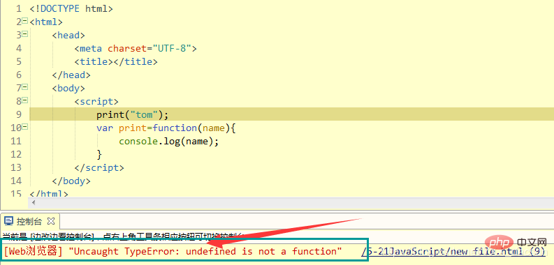 <script> print("tom"); //先调用,再定义会出错。 var print=function(name){ console.log(name); } </script>