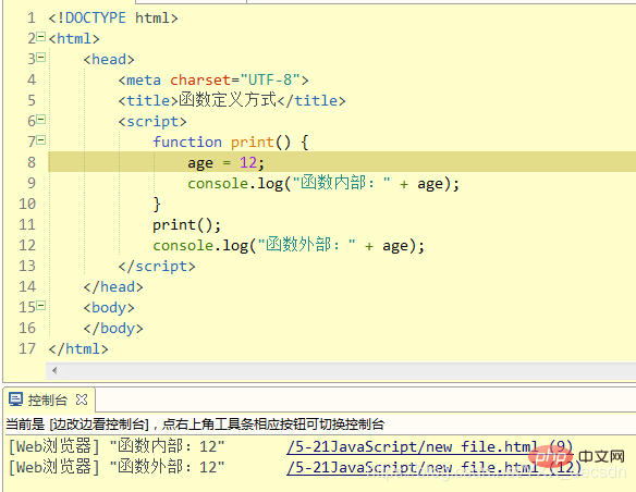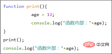 函数内部声明变量时,如果忽略var关键字,则该变量为全局变量,如下示例:
