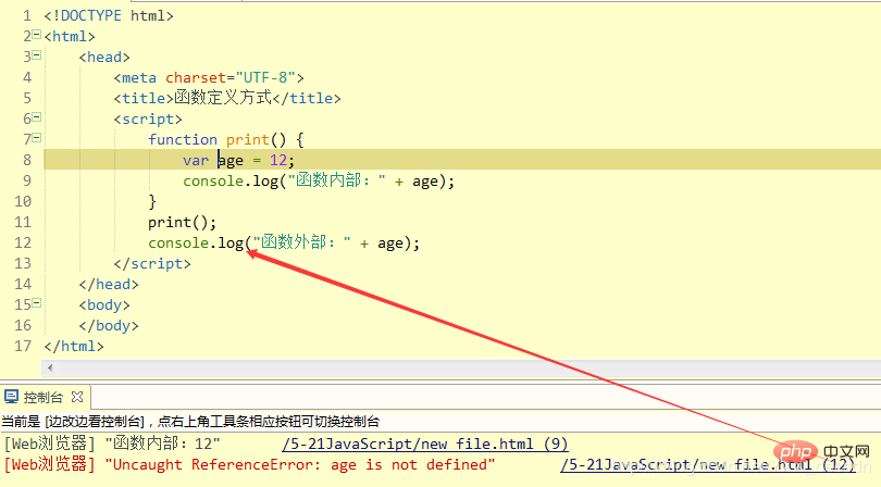 <script> test(23); function test(age){ //先调用,再定义方法,不会出错 console.log(age); } </script>