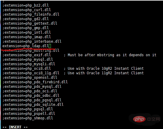vi /usr/local/php/lib/php.ini extension=ldap.so |