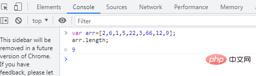var arr=[2,6,1,5,22,3,66,12,9]; arr.length;