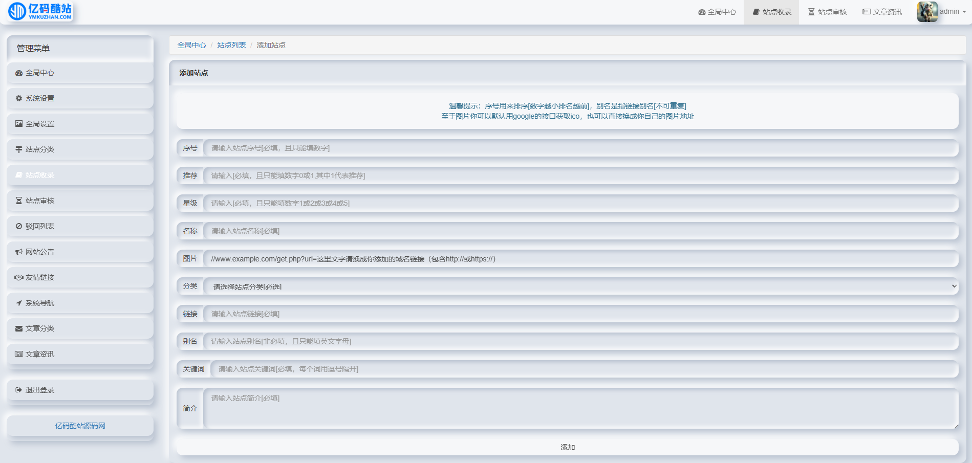 基于SiteHub二次开发的免费开源网址导航系统,支持前台用户自主提交收录,自动获取TDK、ico以及网站缩略图,支持文章发布等。
