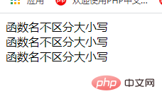 <?php function ABC(){ echo '函数名不区分大小写<br />'; } aBC(); AbC(); ABc(); ?>