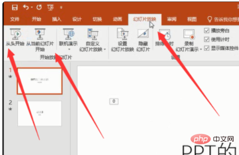 2、在界面上方可以看到“从头开始”和“从当前幻灯片开始”,根据需要点击即可。