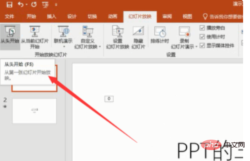 快捷键F5,可以从第一张幻灯片开始放映ppt。