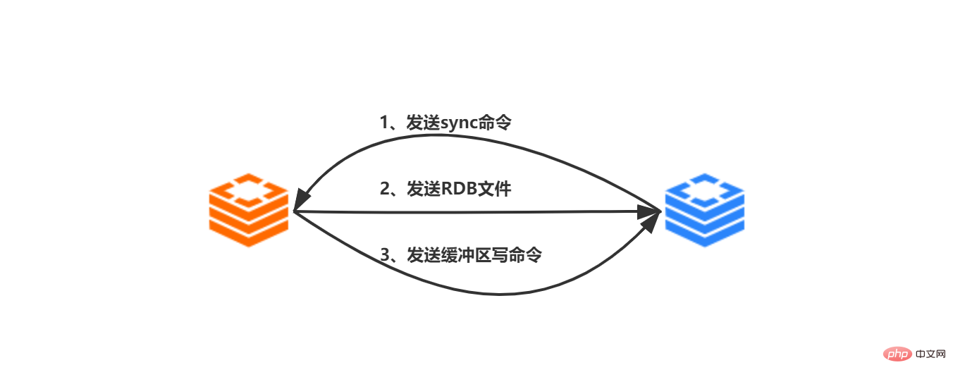 主服务器接收到sync命令后,执行bgsave命令,主服务器主进程fork的子进程会生成一个RDB文件,同时将RDB快照产生后的所有写操作记录在缓冲区中