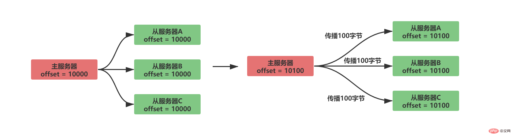 主服务器向从服务发送数据,传播N个字节的数据,主服务的复制偏移量增加N