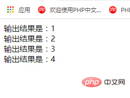 <?php for($a=1;$a<5;$a++){ echo "输出结果是:".$a."<br/>"; } ?>