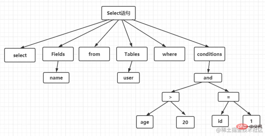 比如一个简单的 SQL 语句:select name from user where id = 1 and age >20;