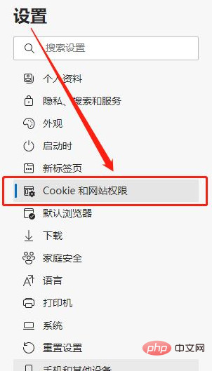 3、在设置界面中,首先选中左侧的“Cookie和网站权限”。