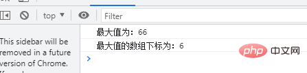 var arr=[2,6,1,5,22,3,66,12,9]; var max=Math.max(...arr); console.log("最大值为:"+max); var index = arr.map(item => item).indexOf(max); console.log("最大值的数组下标为:"+index);