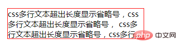 <!DOCTYPE html> <html> <head> <meta charset="UTF-8"> <style> *{margin: 0px;padding: 0px;} .box{ width: 280px; height: 62px; margin: 50px auto; border: 1px solid red; overflow: hidden; -webkit-line-clamp: 3; text-overflow: ellipsis; display: -webkit-box; -webkit-box-orient: vertical; } </style> </head> <body> <div class="box"> css多行文本超出长度显示省略号,css多行文本超出长度显示省略号, css多行文本超出长度显示省略号,css多行文本超出长度显示省略号 </div> </body> </html>