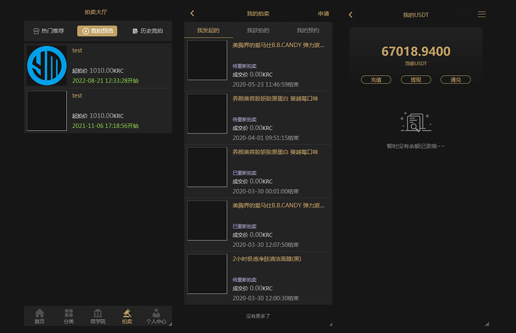 KRC跨境电商系统/拍卖系统源码/竞拍系统源码/高端商城虚拟币支付电商源码