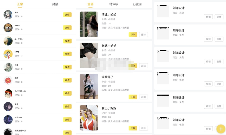 特点:支持用户投稿,后台审核后会发订阅消息给用户提示作品审核状态,增加用户粘性,支持后端修改/增加轮播图