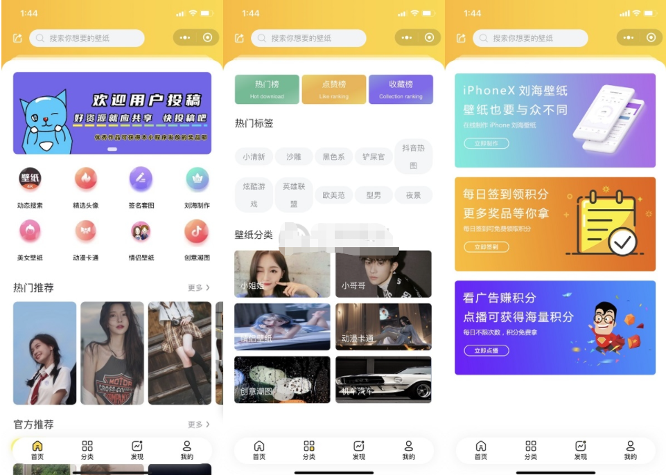 2021最新UI云开发壁纸小程序源码/支持用户投稿_站长亲测