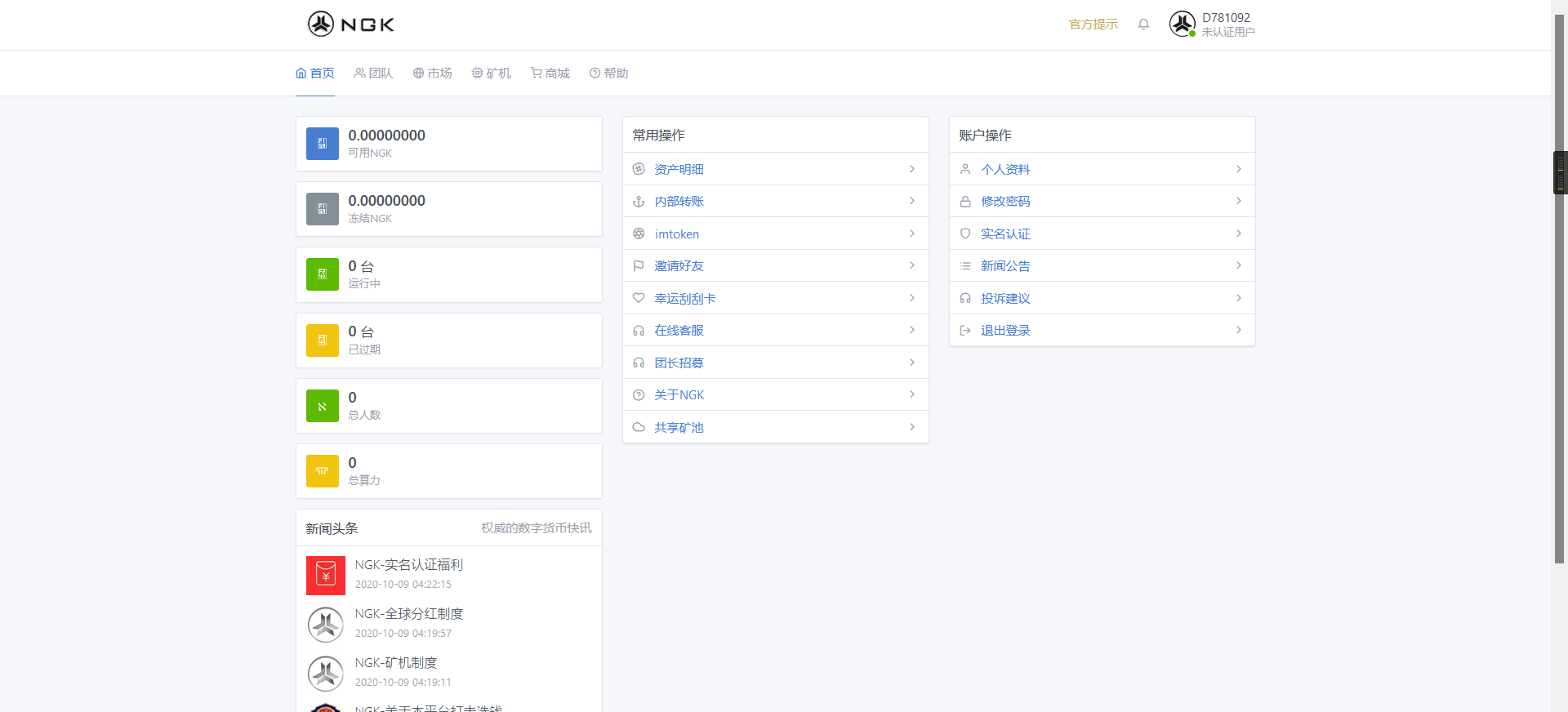 thinkphp6+mysql开发的NGK矿机区块链挖矿系统