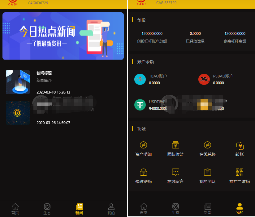 CAGI虚拟币 理财H5网站源码区块链投资分红源码下载