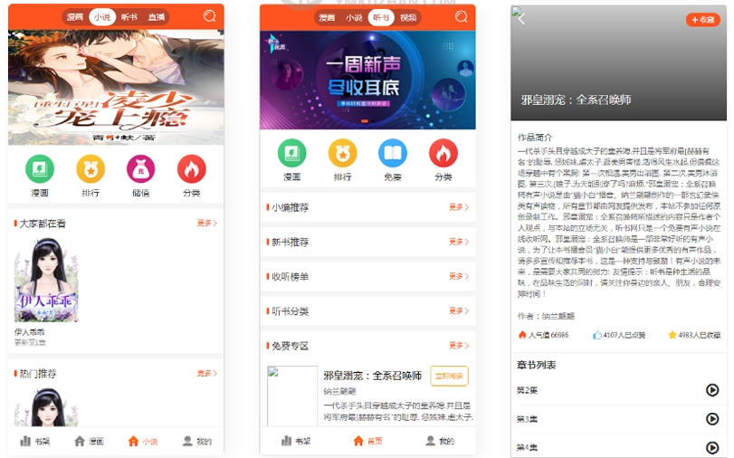 带采集/漫画小说听书三合一分销平台源码/带视频教程