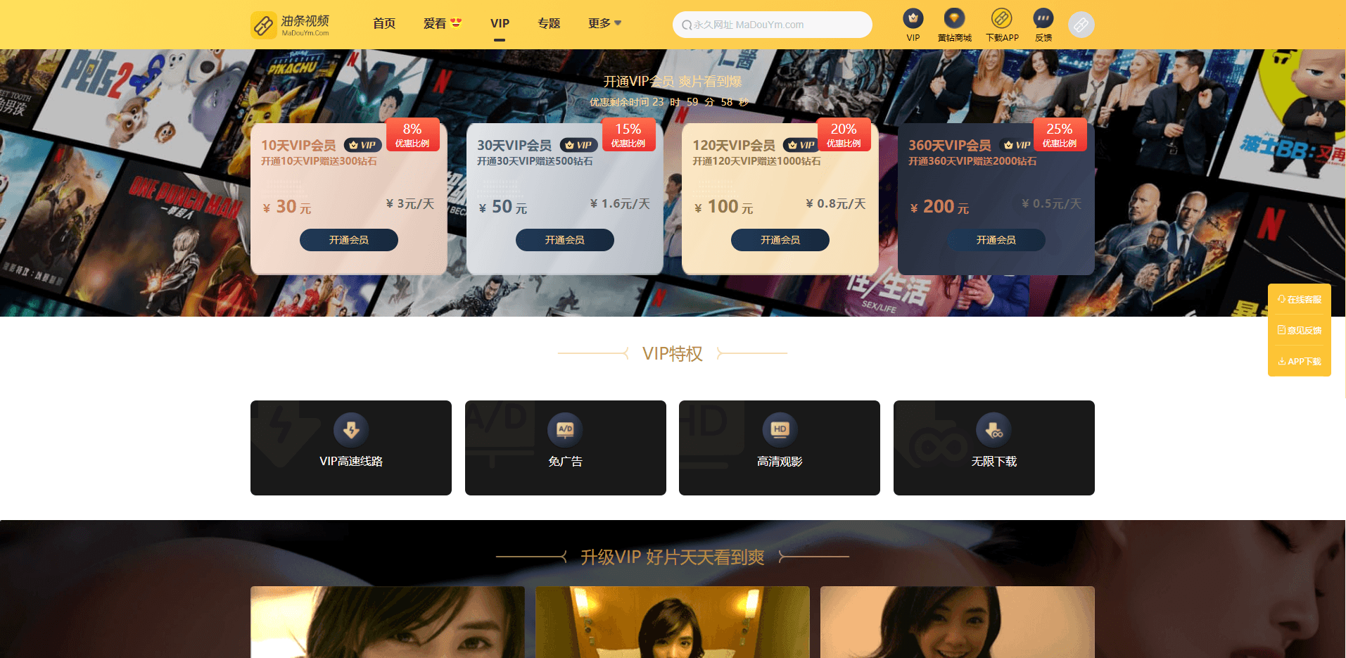 在线影视网站源码支持视频试看网站源码VIP观影PC+WAP模板基于苹果CMS v10
