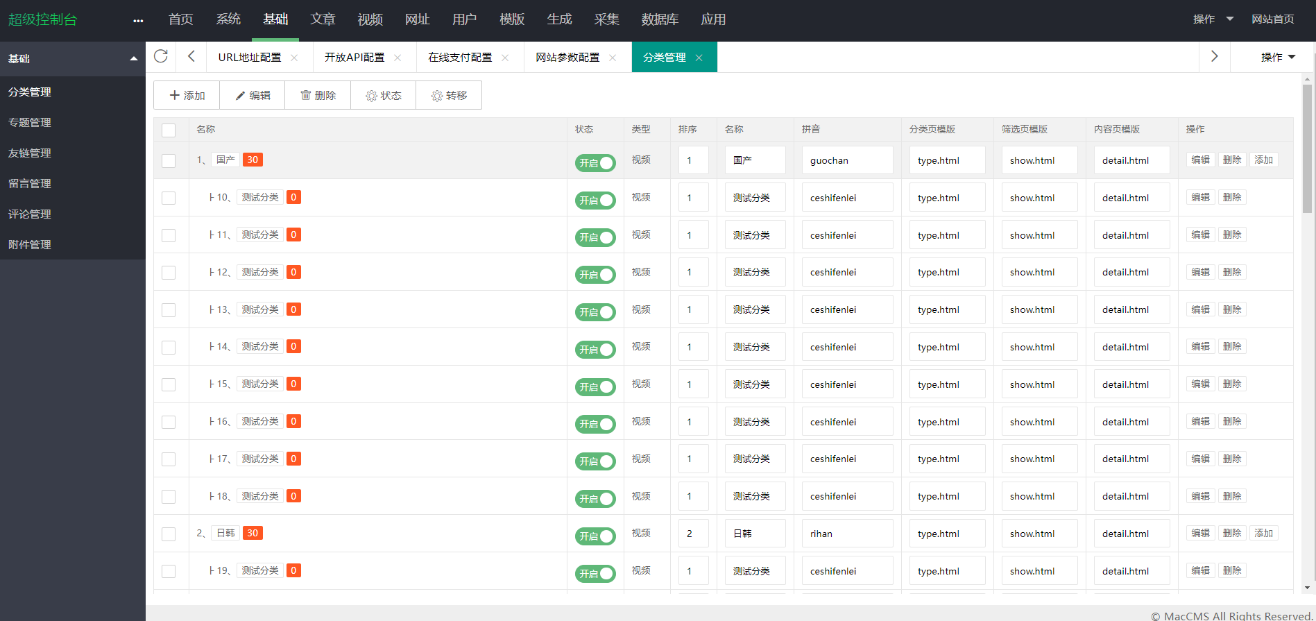 2. 视频,演员,专题,收藏,会员系统模块齐全,支持子分类,不再只显示单一的主分类