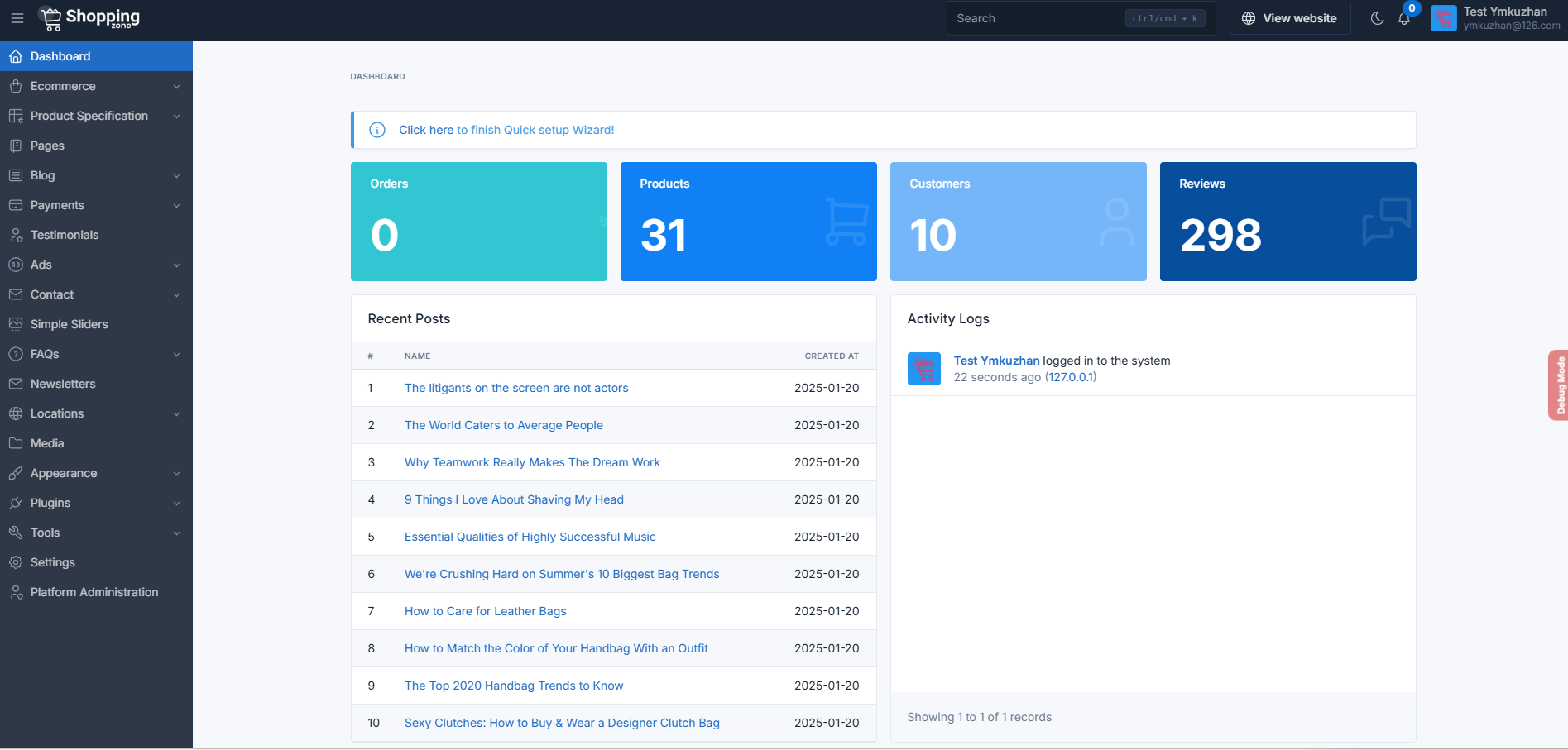 laravel购物网站,响应式电商网站系统,包含愿望清单系统,页面、博客、菜单、联系方式、新闻通讯、滑块模块等