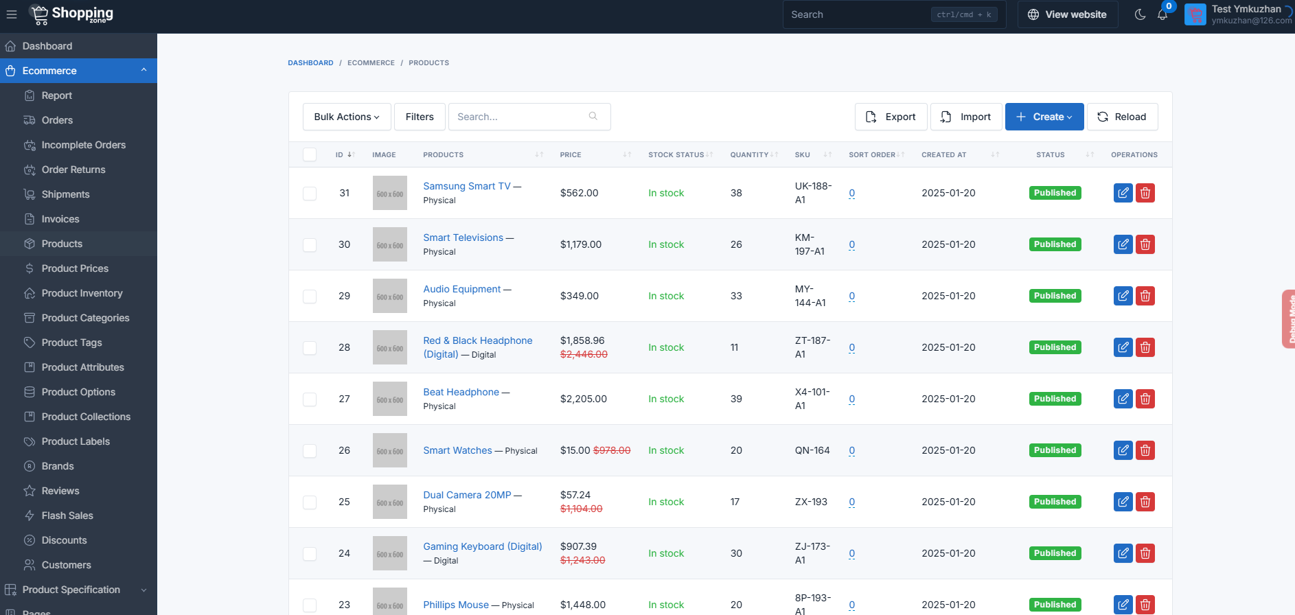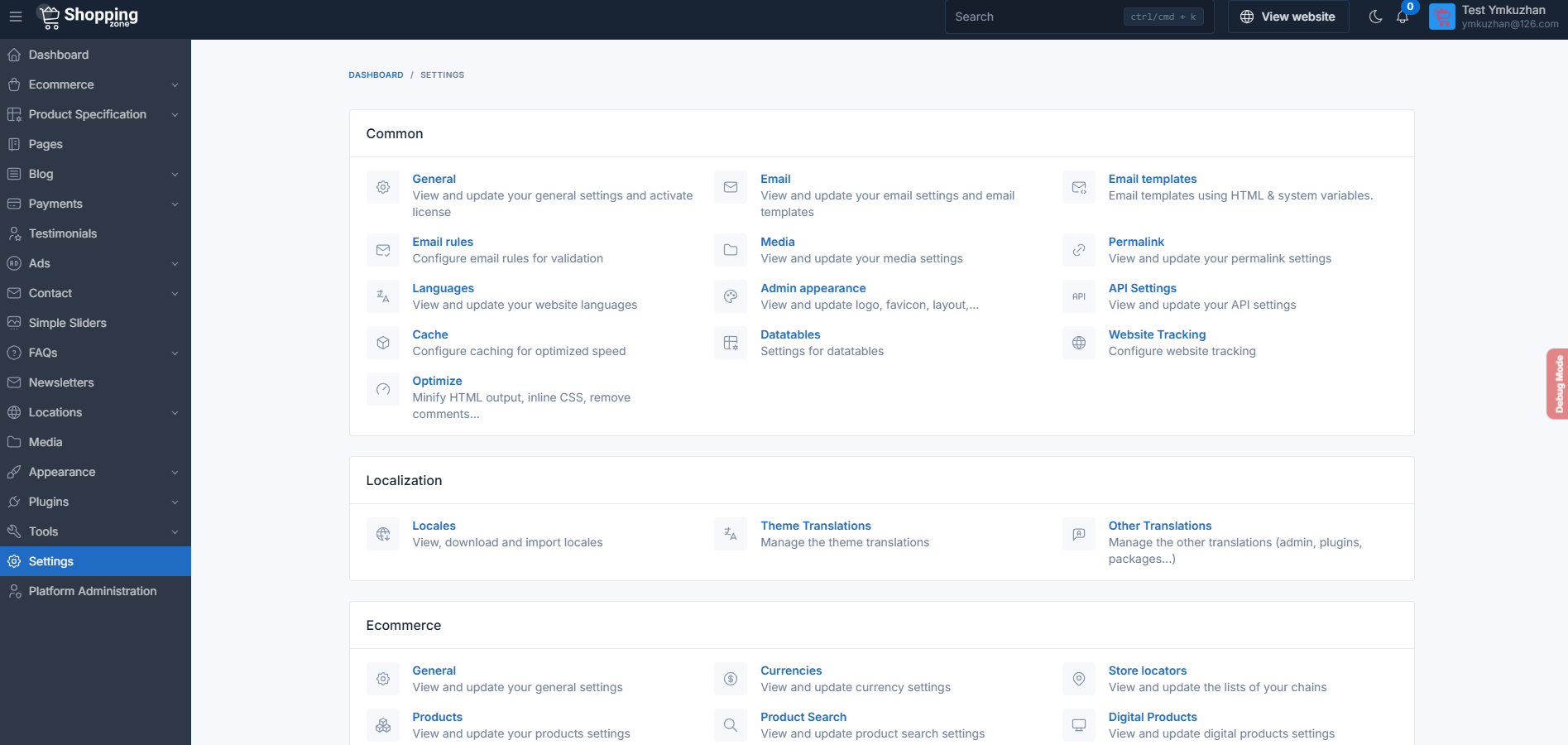 折扣功能、多币种、多支付网关PayPal、Stripe、Paystack、Razorpay等,可配置站点语种
