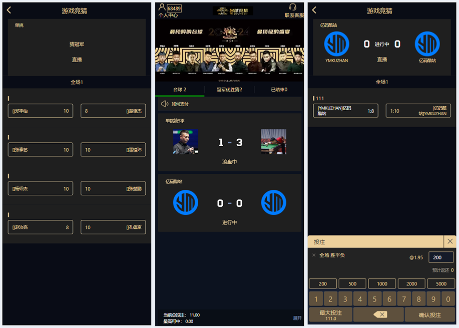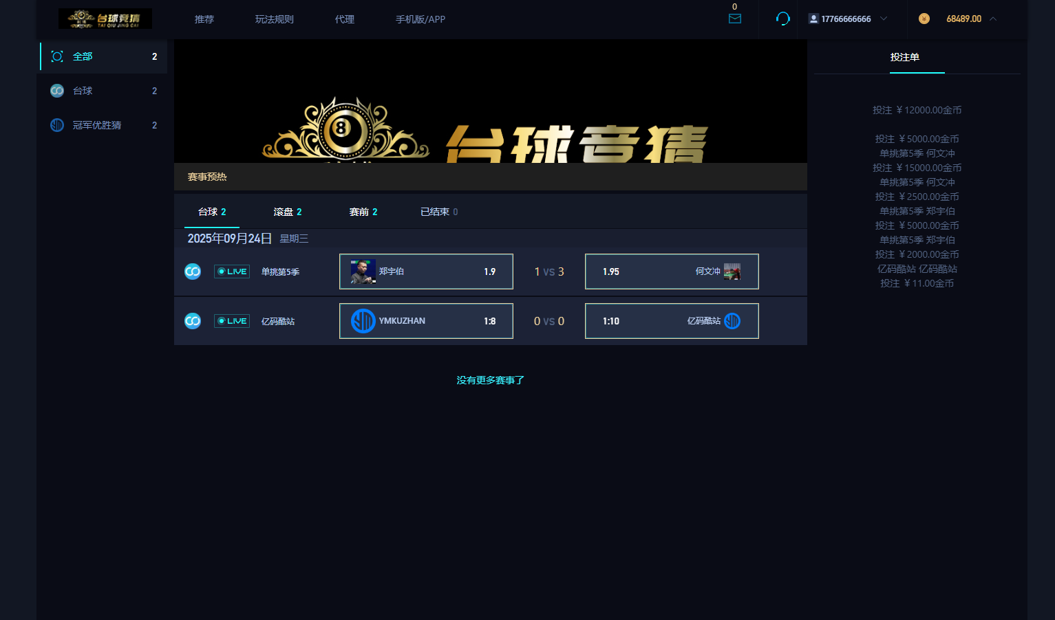 赛事竞猜系统源码/PHP+HTML游戏台球赛事竞猜平台
