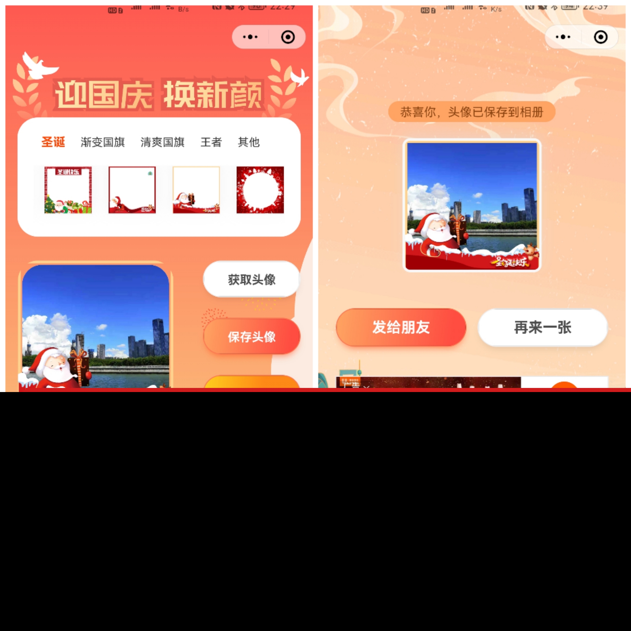 国庆头像生成小程序源码,uniapp框架, 仅支持微信小程序端 , 获取微信头像, 可以选择国旗或其他小图标, 支持扩展。